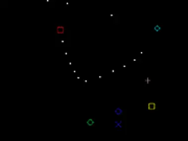 Shoot the shapes that are attacking. Grab red crosses to heal yourself. Large groups appear fast!