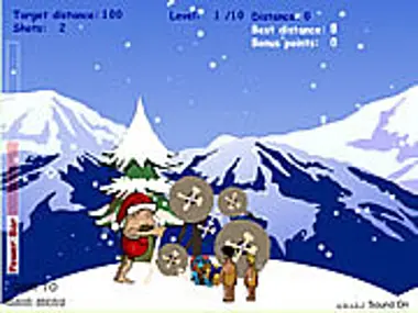 Take aim and fire! Shoot presents as far as you can using your stone age cannon / machine. Bounce presents off of candy sticks and buy upgrades in order to reach your target distance.