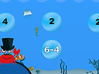 Game for kids to practice simple subtraction. Pick the bubble with the correct answer.
