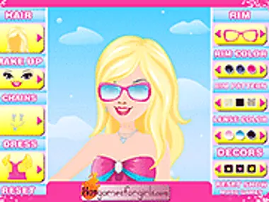 Play this fun design games for girls and be a sun-glass fashionista! Your look could be even more perfect by wearing a pair of fashionable sunglasses! Please dress up this cute girl and design a pair of unique sunglasses for her!