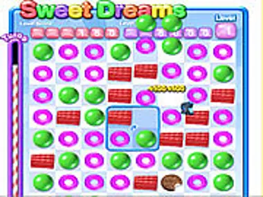 Sweet dreams is a "Rotate and match 4" game. You must click and rotate to the right or the bottom squares of candies. Try to align rows or columns of 4 identical candies to destroy a line. You have a maximum of 40 rotations to earn 5000 points and switch to the next level.