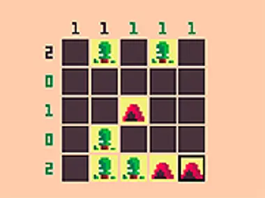 Tents and Trees is a puzzle game with similarities to sudoku or minesweeper. Place the tent beside the tree according to the numbered blocks where the tents should not be on the same line or adjacent also. So plan your strategy and place the tents beside trees and leave the other blocks un touched. Enjoy this pixel themed puzzle game and have fun. Play a lot more pixel art games only on y8.com