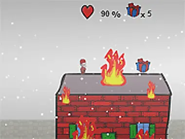 Jump over robots and grab the presents. Watch out for missile firing robots!