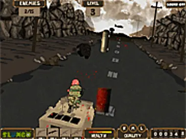 Launch your attack and drive your army truck to the glory. Smash your enemies and shoot all of them to achieve your goal. Your main objective is to cross the battle path destructing everything comes in your way. Each level has a new assignment for you. Upgrade your guns for powerful attack. Choose your game mode in the beginning. You have three level of difficulty - easy, medium and hard. All the best Soldier.