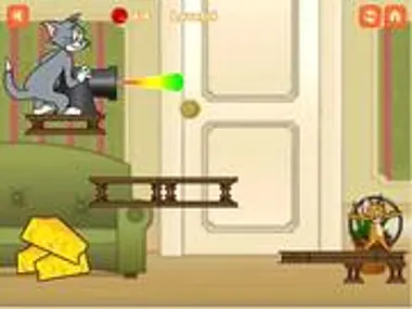 To get the cheese, Tom and Jerry need to work together this time! Remember that the angle and strength of the cannon are very important.