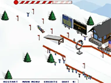Once it starts, you will be located in a ski resort which has heavy white snow. There are also many people there who want to have a look of your shows. They are all very happy and excited. Ok. Your shows begin. You have to give the sled the right amount of power in order to safely make it through the ring. Press and hold the go button to start the pusher. He will push the sled until you let go of the button. The amount of power you give the pusher effects how far the sled will jump. If the amount of power you give is too little, the sled will fall down the snow. And the people who are sitting on the sled will fall down too. On the contrary, the sled will miss the ring. Have a good holiday.