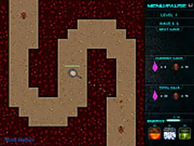 Fire your stationary turret at the aliens that are coming at you along a tower defense-like path.