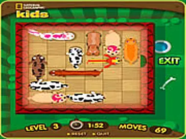 A fun puzzle where you have to move the dogs in order to get the protagonist out of the room through the door.